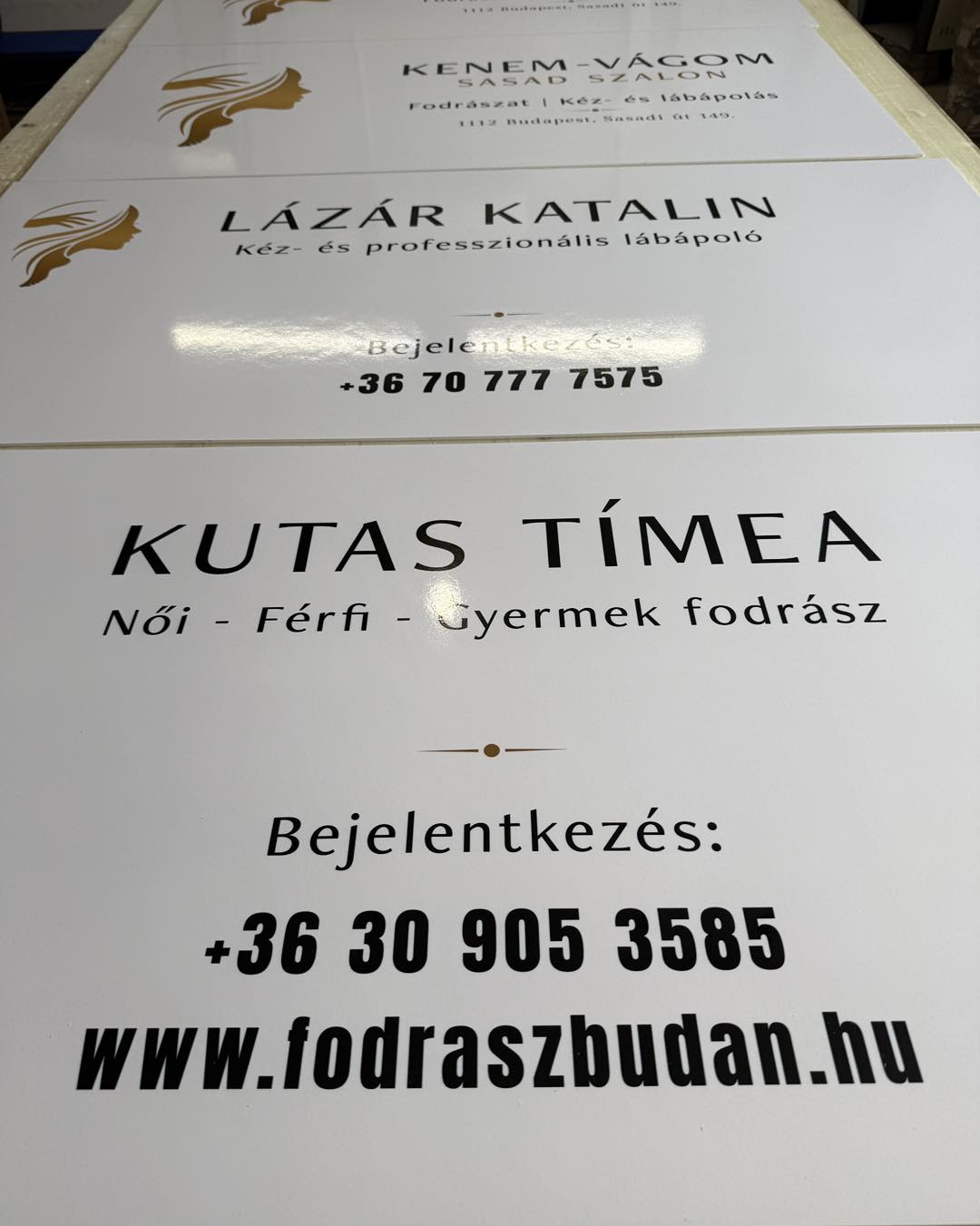 - Kültéri cégtábla: Üzletportálra, kerítésre, homlokzatra.