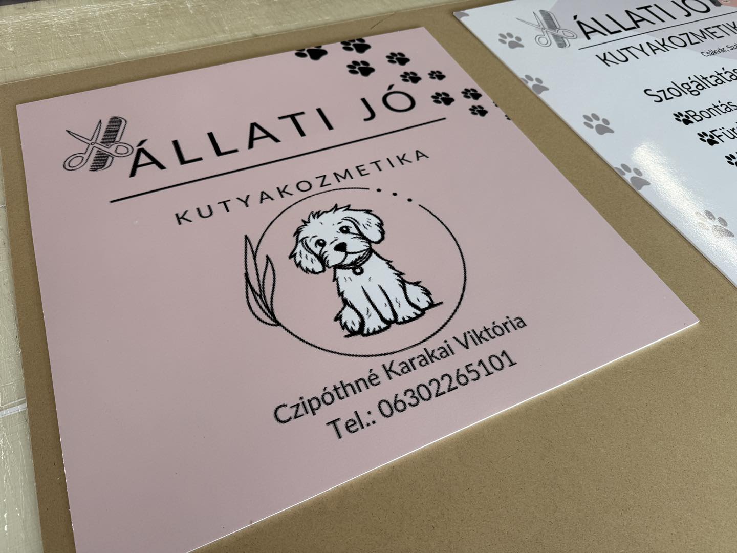 Minden cégtábla UV-álló és formatartó, legyen szó 3-5 mm-es PVC-ről vagy Dibond lemezről.
