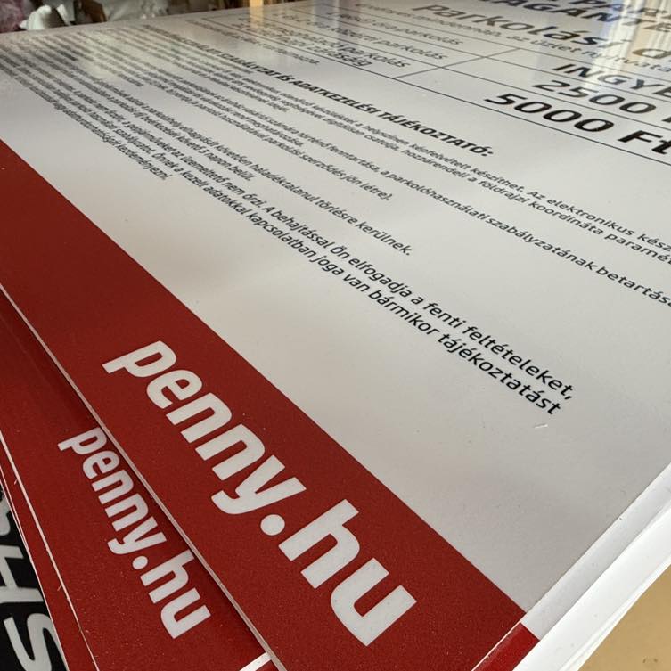 A legtartósabb megoldás a Dibond (alumínium kompozit) lemez, de rövid- és középtávú kampányokhoz a 3-5 mm-es PVC tábla is kiváló. Az általunk gyártott táblák prémium fóliázást kapnak, így még a PVC is sok évig ellenáll az időjárásnak.