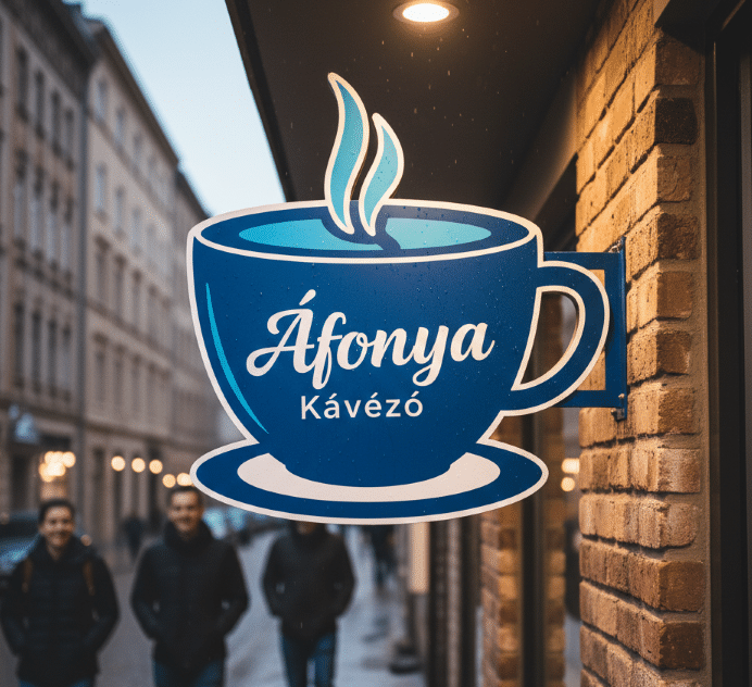 Erre a problémára a legjobb megoldás ez a 50×50 cm-es, fal síkjából kiálló cégér.