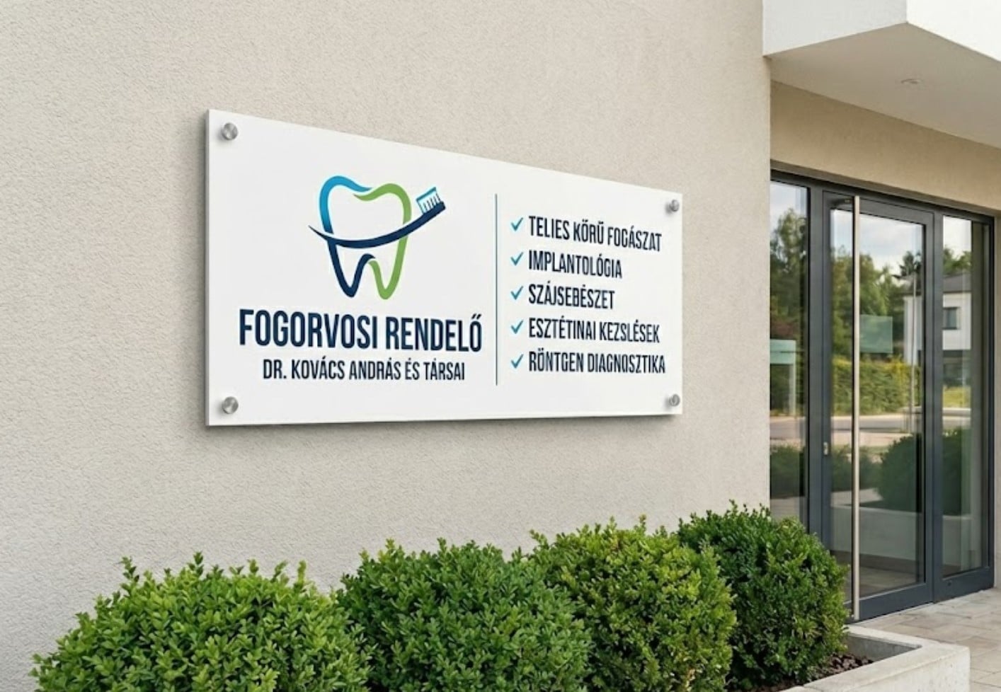 Fogorvosi rendelő reklámtábla saját névvel – 130×50 cm