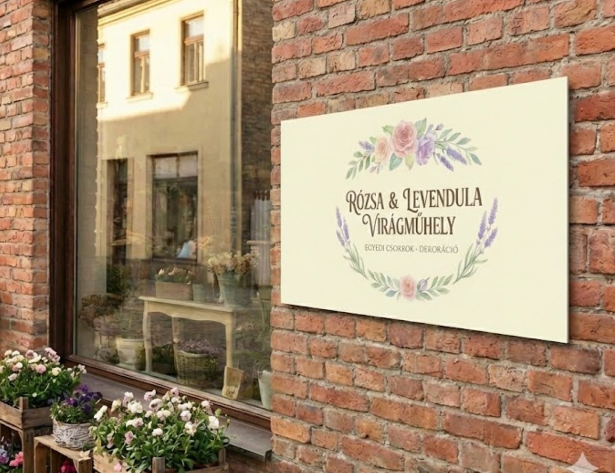 Több mint egy lapos tábla: Virágüzleteknél gyakran használunk formavágott megoldásokat (pl. kerek cégér, vagy levél/virág forma), esetleg térhatású (3D) betűket, amik kiemelkednek a síkból, eleganciát sugározva.