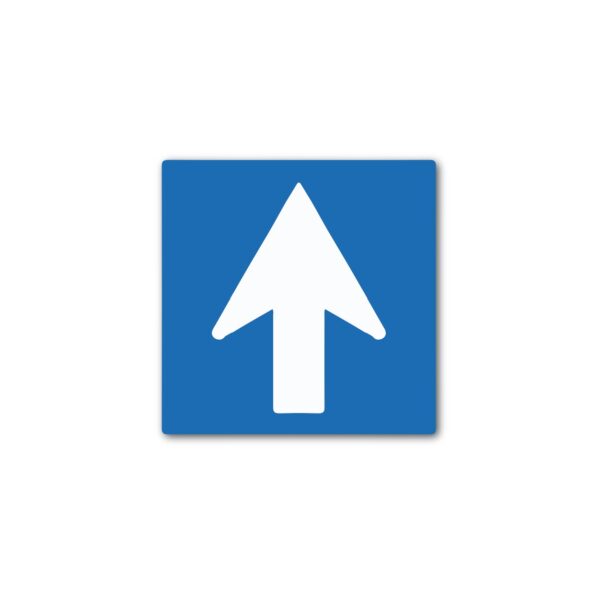 Prémium minőségű, időjárásálló Egyirányú forgalmú út (KRESZ) tábla, amely a közlekedés irányát jelzi zárt vagy korlátozott forgalmú útszakaszon.