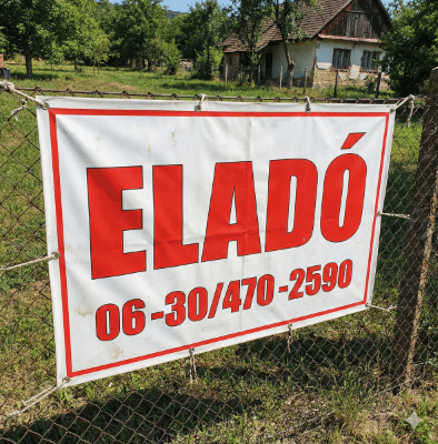 Profi, kültéri hirdetőponyva ingatlaneladáshoz.