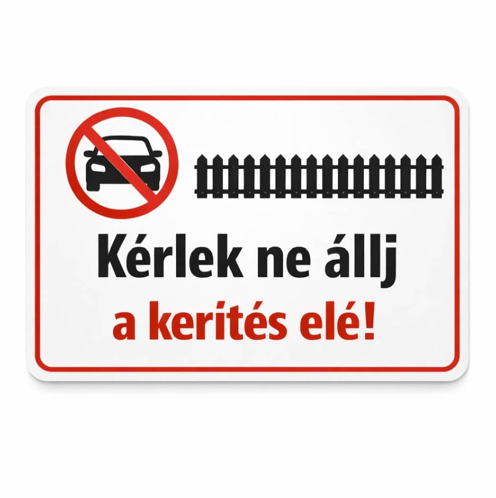 Tegye egyértelművé a szabályokat ezzel a megbízható “Kérlek ne állj a szomszéd kerítése elé” táblával, és biztosítsa a zavartalan, barátságos közlekedést mindenki számára!