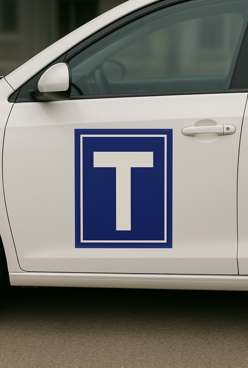 Tanulóvezető matrica (T betű) – biztos jelzés kezdő sofőröknek