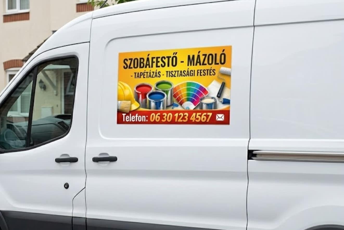 A szobafestés és mázolás bizalmi munka, ahol a rendezett megjelenés már fél siker. Ha a parkolóban egy igényes céges autómágnes virít a kocsidon, az ügyfelek azonnal látják, hogy adsz a minőségre. Ezzel a sablon autómágnes megoldással megspórolod a tervezési költséget és időt, mégis profi arculattal vághatsz bele a következő projektbe.