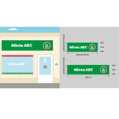 Mi most két alap méretet határoztunk meg, de a lényeg az, hogy minimum 150x40cm méretű táblátok legyen az üzleten.